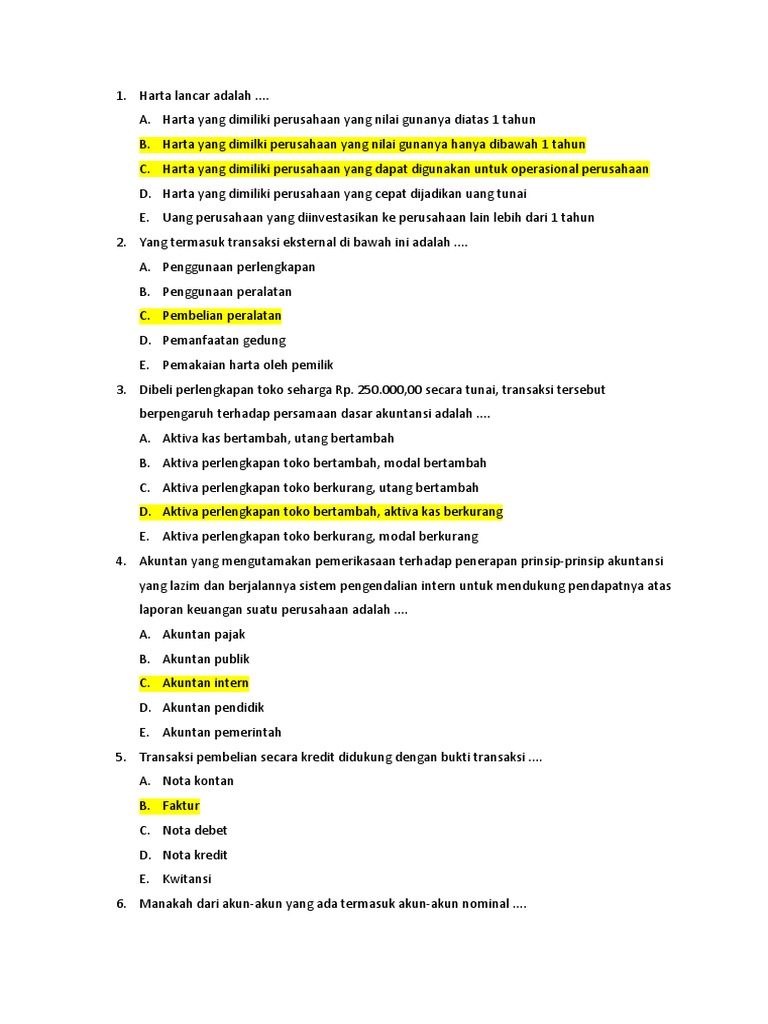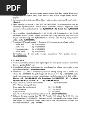 Soal Wajib from imgv2-1-f.scribdassets.com Memeriksa selisih kurs jika terjadi suatu transaksi yang menggunakan valuta asing. Bentuk yang terakhir ini lebih lazim digunakan. Rekonsiliasi bank bisa dibuat dalam 2 cara yang berbeda, dimana ada 2 bentuk diantaranya di akhir dan juga diawal. Bank dalam hal penyimpanan kas perusahaan. Jadi, rekonsiliasi bank ini bisa diartikan juga sebagai kegiatan untuk merinci perbedaan transaksi antara bank dan perusahaan. Bank secara berkala mengirimkan statement berupa laporan rekening koran yang bersisi informasi tentang seluruh transaksi penyetoran maupun pengambilan oleh depositor/ nasabah/ perusahaan selama periode tertentu serta dilengkapi dengan chek untuk bukti pelengkap. Laporan keuangan yang biasa dibuat oleh perusahaan dalam dunia bisnis biasanya disebut dengan laporan keuangan komersial dan laporan keuangan yang biasa dibuat oleh perusahaan dalam perpajakan disebut sebagai laporan keuangan fiskal. Dan juga menjadi tolak ukur perusahaan dalam menilai produktifitas selama periode tersebut.